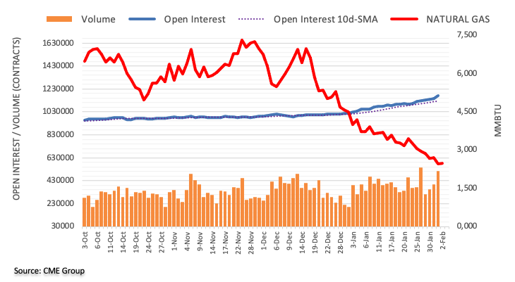 天然气价格在周三又一次延续了多周以来的急剧下跌。 伴随着负面的价格行动,未平仓合约和成交量都在增加,使得近期内进一步下跌的前景非常明显。 然而,值得注意的是,目前商品的超卖状态可能会在不远的将来引发修正性反弹。 卖方的下一个目标是每百万英热单位2.00美元,该区域上一次交易是在2020年9月底。
