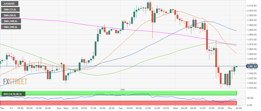 不过,每小时相对强弱指数(RSI)目前位于40.00水平,已转向趋平,暗示看空倾向仍未改变。因此,跌破1924.83美元的日低可能会触及1900美元的水平。下一个下行目标预计在1863美元。