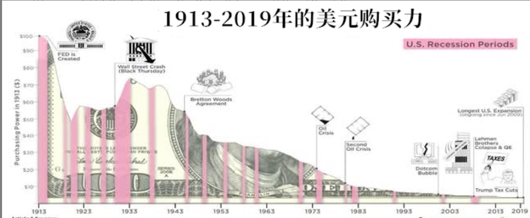 数据显示,在过去的一个多世纪,美元的购买能力是明显持续下跌的,也就是说,美元越来越不值钱了。而在几个世纪以来,黄金一直都展现出良好的价值储存功能,这使其与通胀的法定货币区别开来。