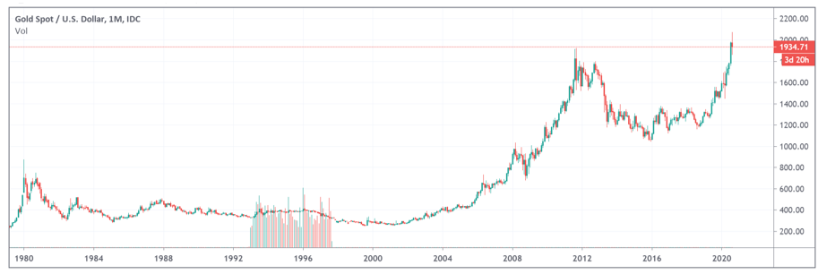 黄金过去40年价格走势