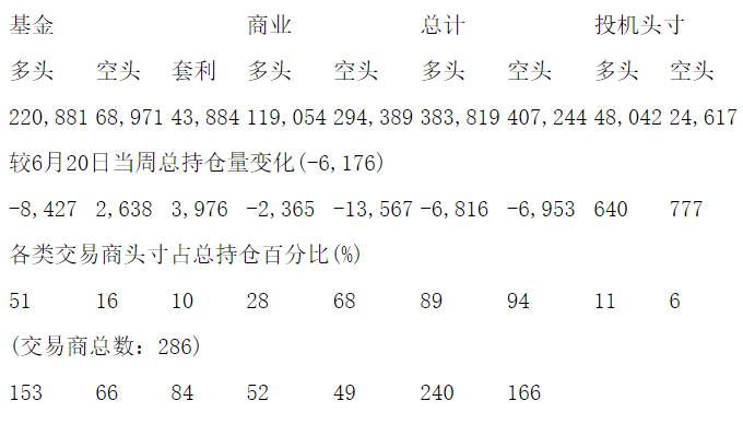 美国商品期货交易委员会(CFTC)最新公布截止6月27日当周COMEX黄金期货分类持仓报告: