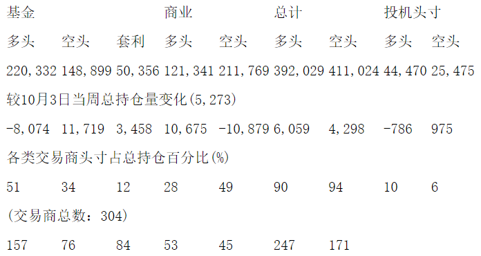 美国商品期货交易委员会(CFTC)最新公布截止10月10日当周COMEX黄金期货分类持仓报告: