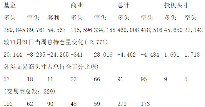美国商品期货交易委员会(CFTC)最新公布截止11月28日当周COMEX黄金期货分类持仓报告: