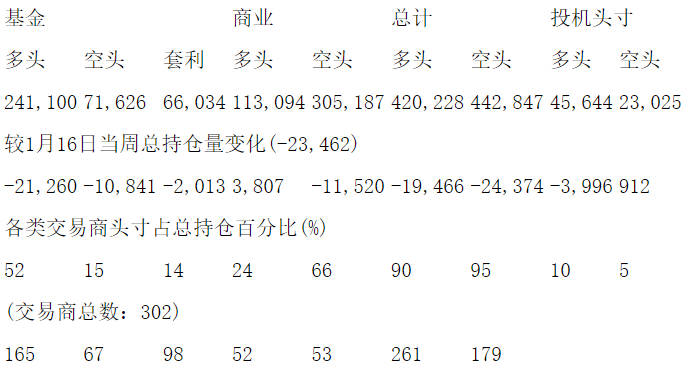 美国商品期货交易委员会(CFTC)最新公布截止1月23日当周COMEX黄金期货分类持仓报告: