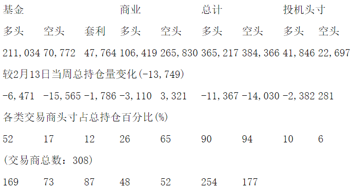 美国商品期货交易委员会(CFTC)最新公布截止2月20日当周COMEX黄金期货分类持仓报告: