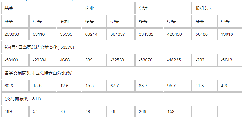 截止4月8日当周COMEX(纽约商品期货交易所)黄金期货分类持仓报告: