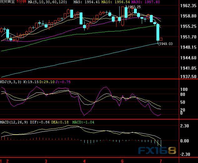 周三亚市盘初,现货黄金曾一度触及1962.25美元/盎司,但金价刚刚短线一度急跌,最低触及触及1949.03美元/盎司。