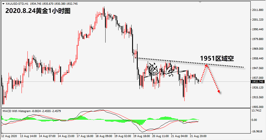 黄金从价位来看,金价仍然维持在1925--55区间宽幅震荡之中,尽管上周五一度跌破1925位置,但是金价很快的回升震荡区间。从形态来看,价格在之前的大跌后,整体陷入区间宽幅震荡之中,大跌后的盘整,并未改变之前整体下跌的可能,因此,日内价格反弹后仍然逢高参与空头。