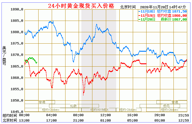 今日黄金价格走势图(2020年11月20日)
