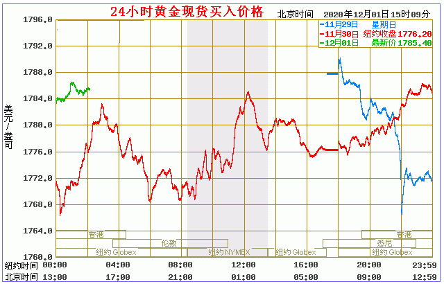 周二(12月1日)亚市盘中,美元承压下滑,现报91.85附近;现货黄金短线持续上涨,金价刚刚突破1785美元/盎司关口。中东局势传来最新消息,一名伊朗高级指挥官遇袭身亡,这令中东局势再度紧张起来,市场避险情绪有所升温,这对金价构成支撑。不过,新冠疫苗乐观消息以及对白宫平稳过渡的乐观情绪限制了金价的涨幅,最新消息称,美国民主党总统候选人拜登在当地时间周一首次听取了总统每日简报。