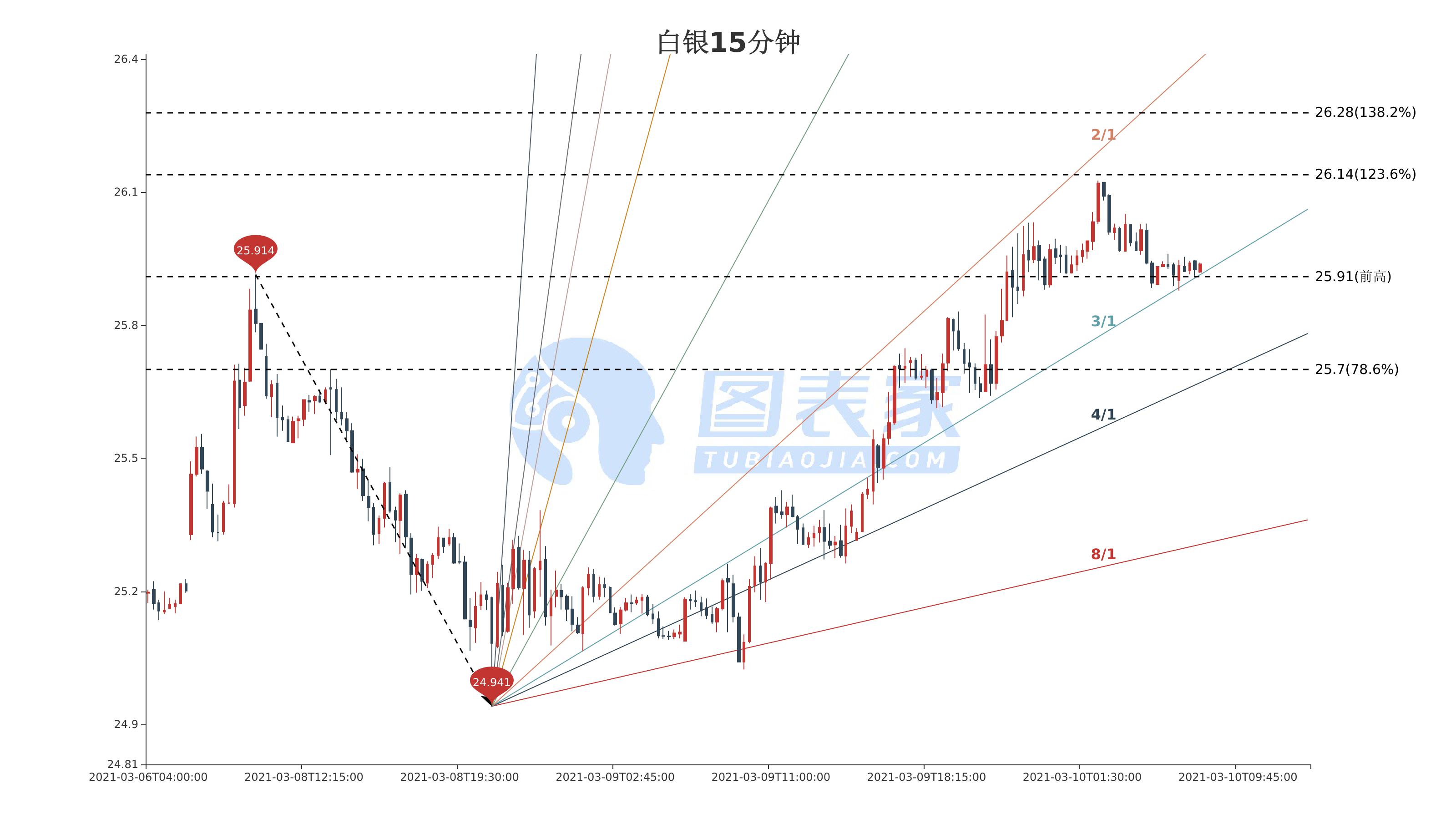 观点:15分钟周期看涨,目标见26.14(若价格跌破25.7,则观点失效)。