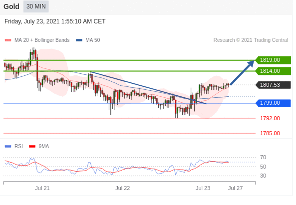在 1799.00 之上,看涨,目标价位为 1814.00 ,然后为 1819.00 。