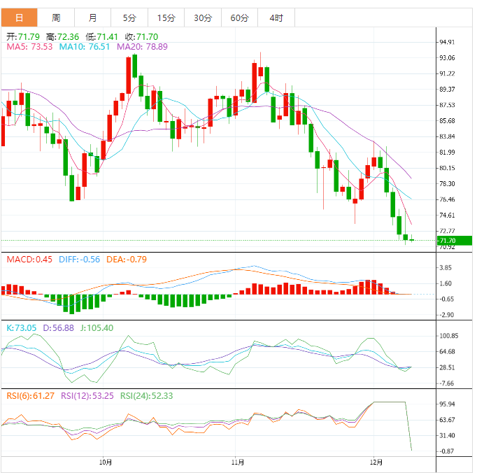 美原油窄幅震荡,目前交投于71.83美元/桶,距离隔夜创下的近一年低点不远,虽然Keystone管道关闭的消息一度在周四盘中给油价提供反弹动能,但因为市场普遍预计管道很快会恢复,油价的反弹非常短暂,周四油价仍收跌0.85%,盘中还创下去年12月23日以来新低至71.10美元/桶。目前,虽然美元的持续走弱还给油价提供一些支撑,但对美国经济和全球经济衰退的担忧笼罩市场,油市情绪比较低迷,油价面临进一步震荡下探的风险。