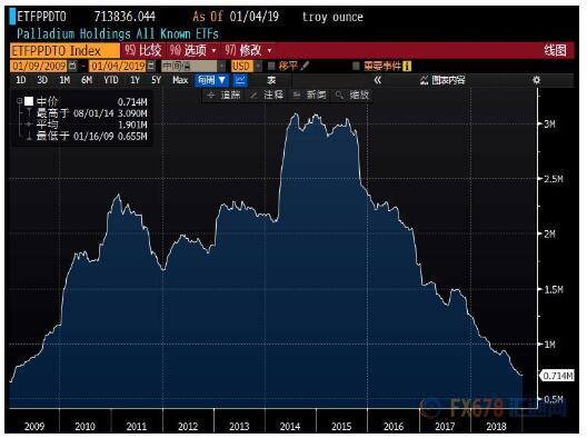 尽管现货钯金2018年再创历史记录新高,超过了现货黄金的价格,而且是连续三年上涨;但自2016年触及的2010年下半年以来的低点452.35美元/盎司,已经翻了近三倍(289%),对于2019年的钯金走势,金融机构的预期却比较悲观。