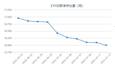 全球最大白银etf--iSharesSilverTrust持仓报告显示,7月12日白银持有量为16002.78吨,较上一交易日减持91.79吨。