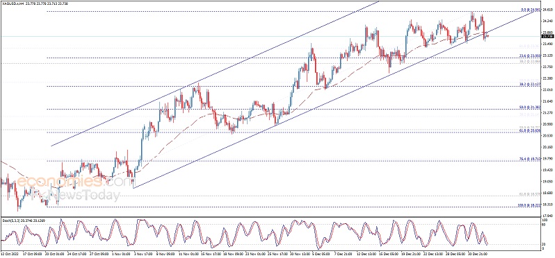 因此,预测银价今日将呈看涨倾向。从4小时图来看,银价跌破50周期指数移动平均线(EMA),这支持看空预期。需要指出的是,若银价反弹突破23.90美元/盎司,这将止住预期中的跌势,并推动银价重回主要看涨趋势。