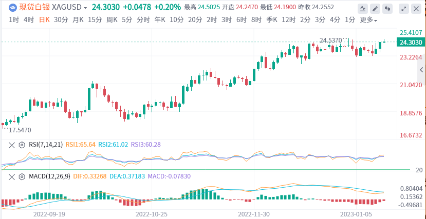 不过一小时图上的相对强弱指标徘徊于70关口附近(超买),交易员应保持谨慎。 不过价格最终仍将突破24.50-24.55美元区域且随后将收复25美元的心理关口,这将是2022年4月以来首次。 一些跟进买盘可能提振白银/美元上涨至25.35-25.40美元的阻力位。