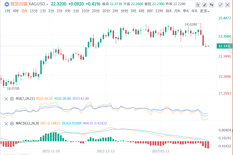 然而,另外银价首个阻力位将是100日均线22.29美元。若银价突破该水平,将可能攀升至50日均线23.05美元,然後是20日均线23.32美元。