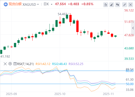 在中美贸易形势改善的推动下,市场情绪改善,白银的避险需求可能会减弱。中国财政部宣布,将从11月10日起取消对美国农产品的部分关税。该部还表示,对某些美国商品征收的24%关税将暂停一年,而10%的关税将保持不变。
