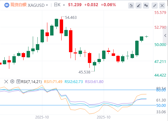 根据CMEFedWatch工具,交易员目前预计美联储在12月会议上降息25个基点(bps)的可能性接近68%,高于一天前的62%左右。较低的利率可能会降低持有白银的机会成本,从而支撑无收益贵金属。
