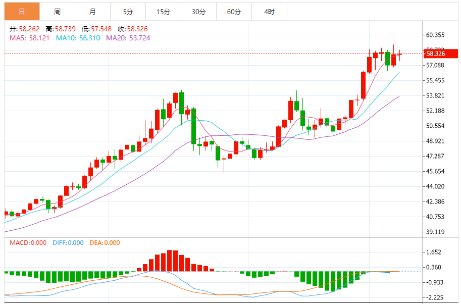白银价格在最后一个交易日下跌,关键阻力稳定在58.80美元,在达到超买水平后出现了消极的力量指标,试图获得可能有助于突破这一阻力的看涨势头,其在EMA50上方的交易所代表的动态支撑继续,加强了短期主要看涨趋势的主导地位和稳定性。