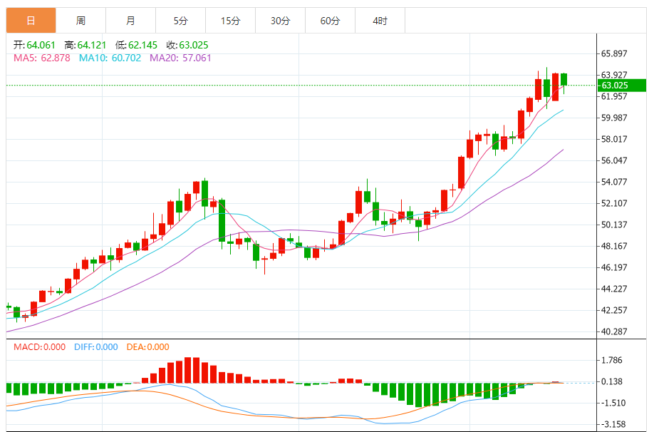 周二(12月16日),现货白银目前位于63.039美元/盎司附近,跌幅为1.58%。