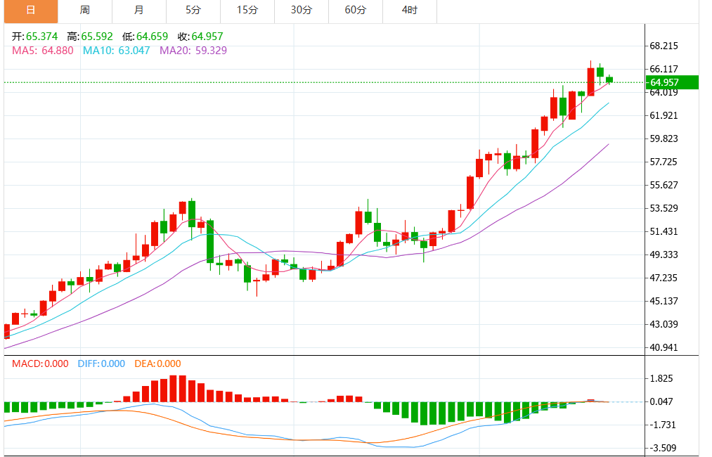 过去两周左右的上涨走势沿着一个上升通道进行。 通道的下边界与100小时简单移动平均线(SMA)重合,该均线持续上升,目前位于67.00美元,反映出稳定的看涨基调。 价格保持在上升均线之上,使买家保持控制。