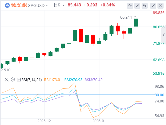地缘政治紧张局势加剧,可能助长西尔弗的上涨空间。伊朗的平民抗议活动正在升温,数百人被杀。伊朗外交部长声称,经过两周持续动荡,安全部队已“完全控制”该国,指责以色列和美国煽动了造成数百人死亡的全国抗议。