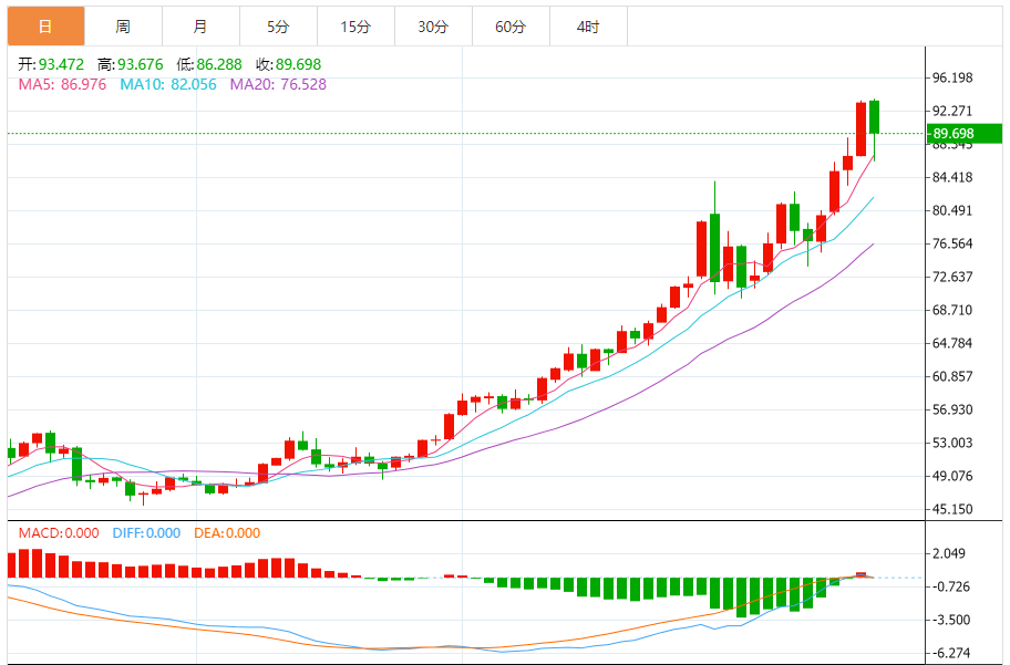 周四(1月15日),现货白银目前位于89.692美元/盎司附近,跌幅为3.81%。
