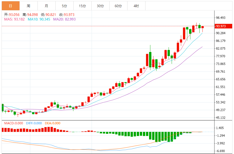 预期交易区间:在90.00美元支撑和98.00美元阻力之间。