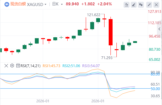 如果白银突破90.00美元,下一个关键阻力位将是95.00美元,随后是100.00美元。继续看好,银股有望达到1月30日的高点118.47美元,超过历史最高价121.66美元。