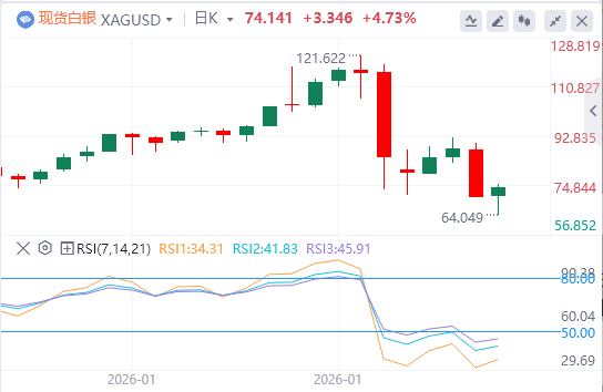 白银正从低点回升,技术形势显示为看跌情景。在多头周期中作为动态支撑的50期简单移动平均线(SMA)继续下跌,货币对位于其下方。移动平均收敛背离线(MACD)已回落至零线以下,相对强弱指数(RSI)仍低于50,显示市场牵引力较弱。