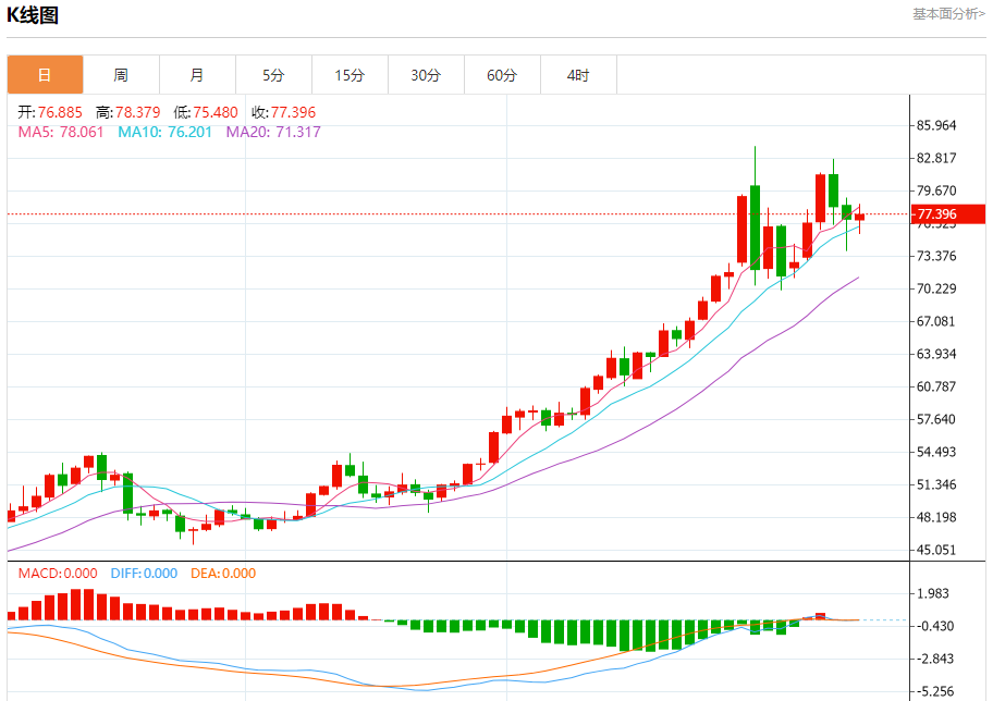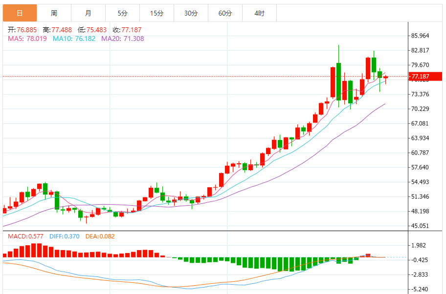 周五盘中,现货白银报77.401,涨幅0.53%。 今日分析:在76.25之上,看涨,目标价位为78.85,然后为80.50。 技术点评:RI技术指标看涨,有进一步向上趋势。 支撑位:76.2575.0573.80 阻力位:82.4580.5078.85 (亚汇网编辑:冰凡)