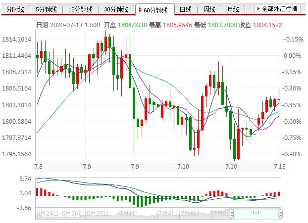 北京时间13:50,现货黄金报1805.22美元/盎司。(财经报社(香港)讯 )