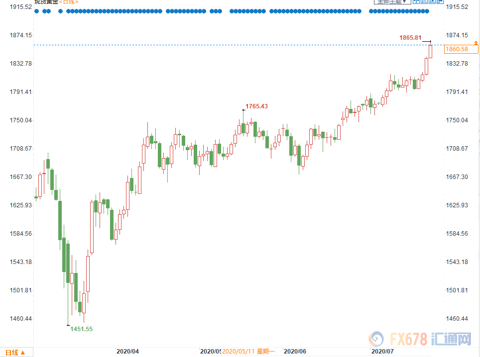 总体而言,全球股市继续维持上涨的态势,但是黄金仍呈现出明显的抗跌性,并在周三进一步走高,最高触及1865.81美元,这是因为美股和黄金同时受益于全球巨量宽松的推动。