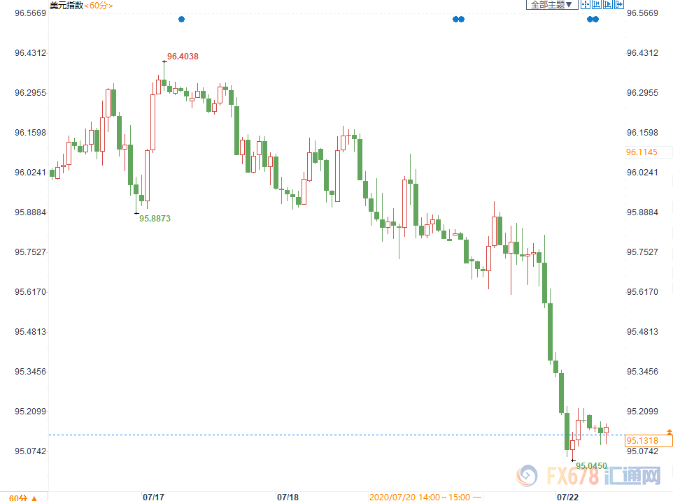 周二美元指数刷新4个半月低点至95.0450,除了欧元区达成了复苏基金,美联储持续的宽松也对美元构成了压力。