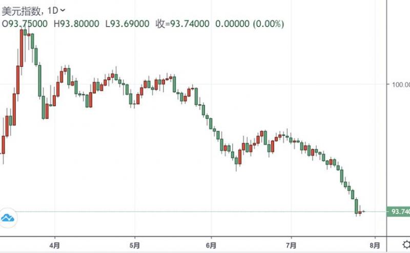 美元自5月以来一直下跌,最近数日抛压沉重,因美国自新冠疫情中的复苏出现问题以及收益率大跌,都令投资者转向其他资产。