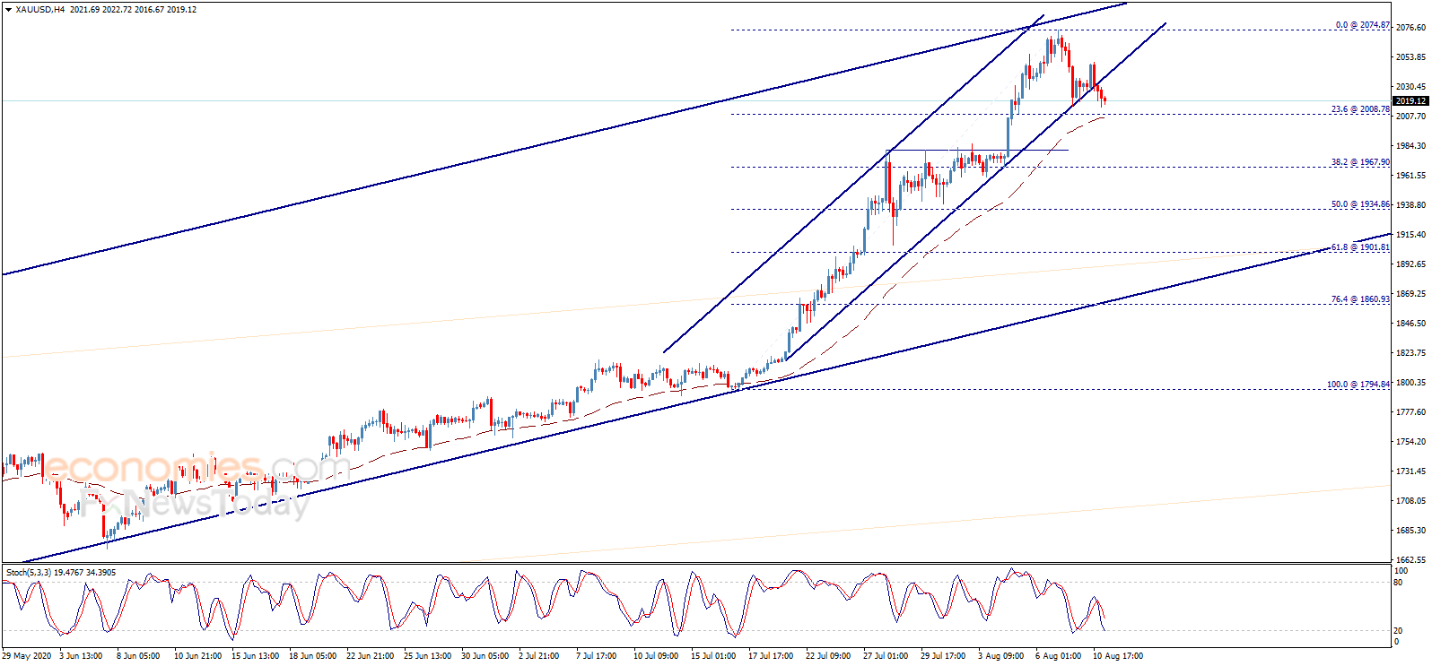 周二(8月11日)亚市盘中,现货黄金继续承压,金价现报2017美元/盎司附近。知名财经资讯网站Economies.com周二最新撰文,对日内黄金走势进行前瞻分析。