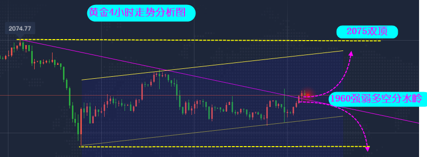 第一:4小时的下降趋势通道的档线位置1960一线是否被企稳;