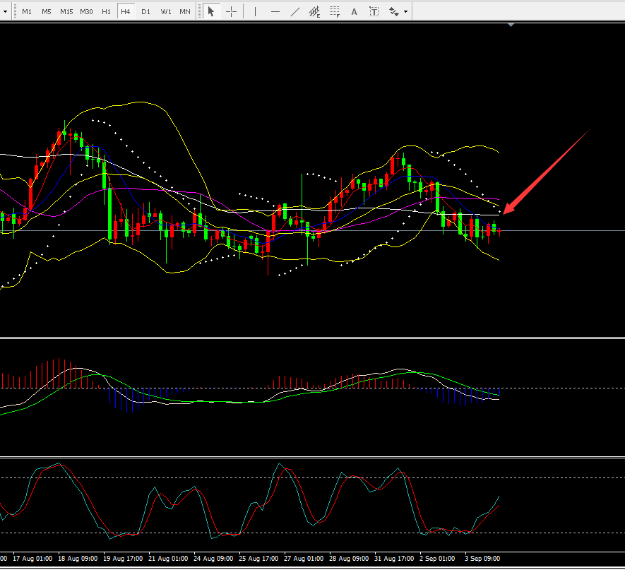 短期价格围绕小时线上下轨震荡,目前在中轨附近来回