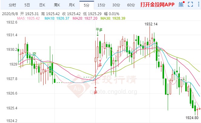 周二(9月8日)亚市早盘,现货黄金小幅走高,回升至1931美元/盎司附近。即便如此,金价仍保持在1924-33美元/盎司的交易区间。黄金价格继续维持底部震荡,依然是空头格局没有改变。