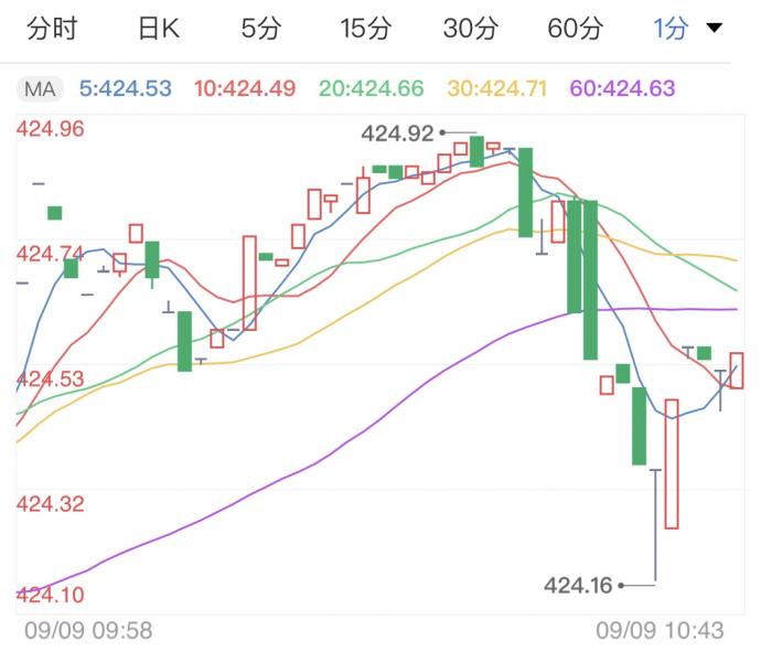 纸黄金周三(9月9日)开盘于423.90元/克,目前黄金价格最高触及426.74元/克,最低价在423.01元/克,截止目前,黄金暂报424.10元/克,涨幅0.07%。