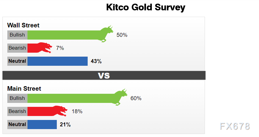 1367名主街投资者参与了调查。在这些受访者中,829人即60%预计金价将上涨。另有290人即21%持中立态度,248人即18%则看空金价。