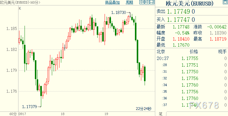 欧系货币大跌,欧元兑美元重回1.18下方,日内最大跌幅逾0.6%;英镑兑美元创四日新低至1.2835,因欧洲不少国家新冠病例增加,已经或有可能实施新的出行限制措施,令投资者对全球经济复苏感到不安。
