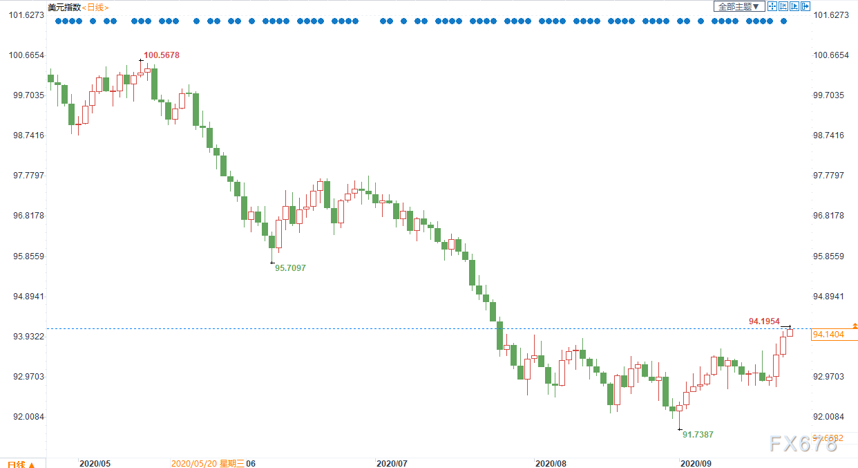 芝加哥联储主席放鹰+美国两党注意力转向大法官提名加剧刺激方案达成难度,美元升至8周高位
