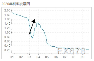 相对应的可以看到,3个月期美元LIBOR利率抖升,市场获取美元的成本迅速增加。