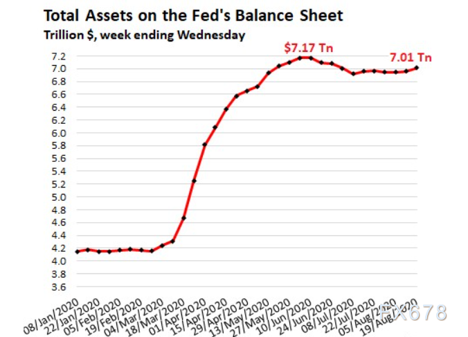 但是相对应的是美联储已经明显放缓了购债的步伐,资产负债表规模自7月下旬以来已经开始下滑,这使得美元的获取成本再度回升。