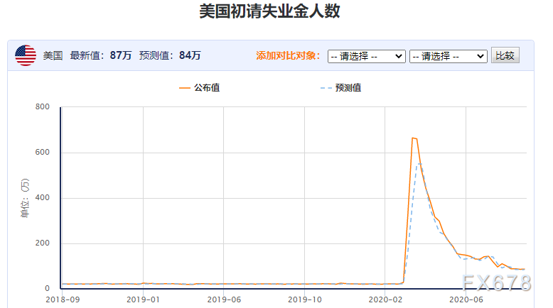 盘中稍早,美元一度上涨,股市一度下跌,因此前美国劳工部表示,截至9月19日的一周,初请失业金人数增加4000人,经季节性调整后为87万人,预估为84万人,此前一周为86.6万人。
