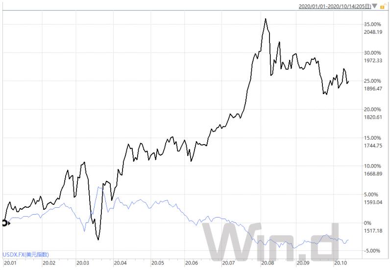 围绕卫生事件的担忧,加之美国两党仍未就新一轮财政刺激方案达成协议,美元表现坚挺,10月13日美元指数涨0.53%,录得三周来最大单日百分比涨幅,现货黄金则承压下跌1.7%,失守1900美元/盎司关口。
