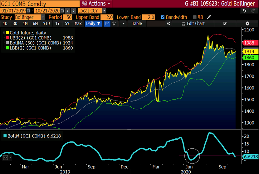 3、黄金技术面将突破不断收窄的布林带通道